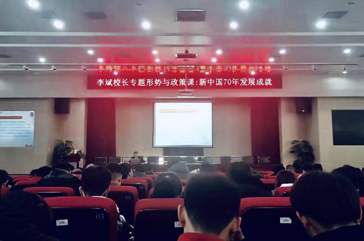 在形势与政策课的最后李斌校长说:“历经70年春华秋实,新中国风华正茂、朝气蓬勃。未来,需要一代又一代华夏儿女接续奋斗、砥砺前行,在新征程上创造出中华民族新的更大奇迹,创造出让世界刮目相看的新的更大奇迹。”