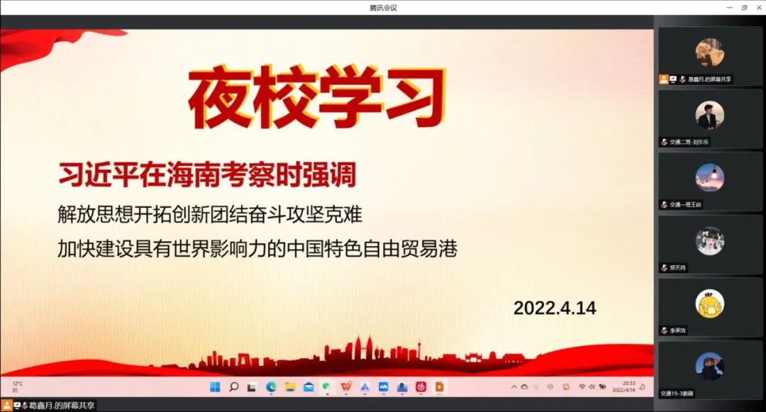 学生第二党支部通过腾讯会议开展了以“学习习近平总书记在海南考察时的重要讲话精神”为主题的线上学习。本次学习的主持人为党员葛鑫月同志,参加本次学习的有二支部全体党员。