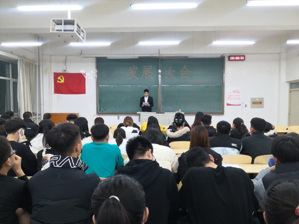 学生第三党支部在逸夫楼G103召开了发展大会。参加本次会议的有学生第三党支部书记崔岩老师和全体在校党员,以及王纳荷芽、周振宇等十一名发展党员。