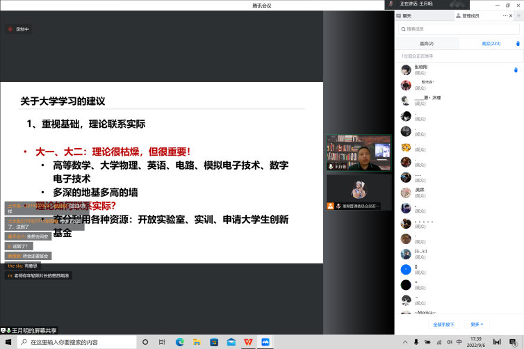 9月5日下午15:00,郭海书记通过讲述认识大学,了解高等教育,让大家充分认识到大学对于人生发展的重要性。作为新时代青年,不仅需要学习新知识,还要有新的奋斗目标,同时还要坚定自身的理想信念。郭海书记告诫各位新生同学,大学是一个新的起点,更是一个重要的转折点,同学们要珍惜大学时期的美好时光,别让它成为人生中迷茫,不知所措的时期。