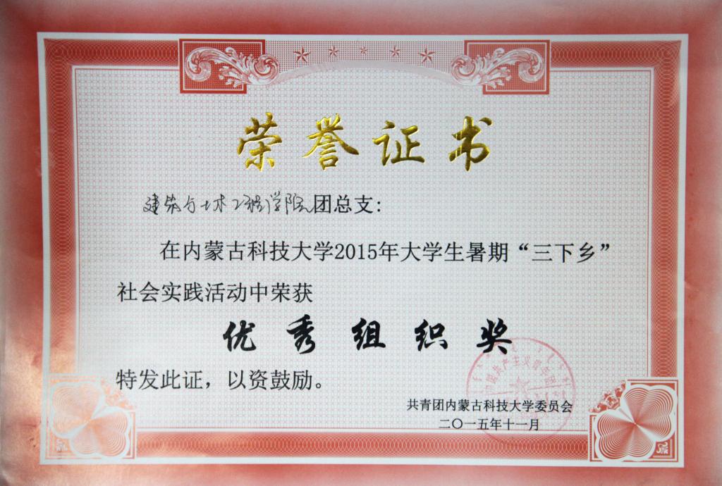 2015三下乡优秀组织奖