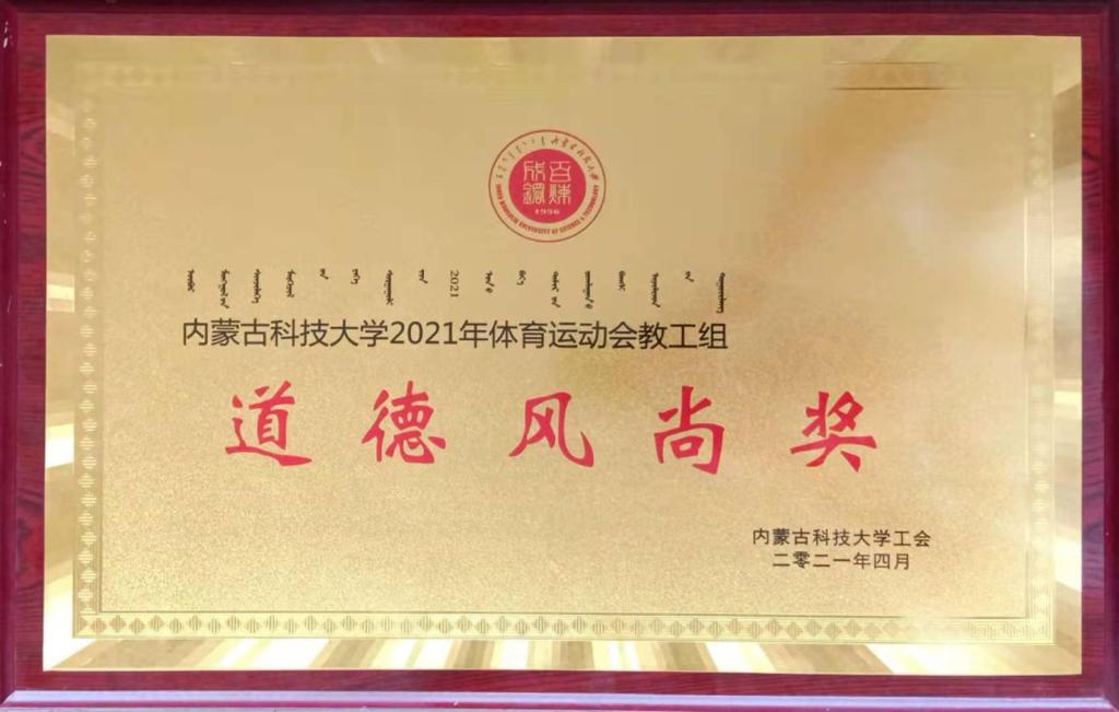 2021年体育运动会教工组道德风尚奖