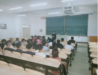 (图七:王潇潇老师与2019级造价、交通、工管班委调研现场 逸夫楼G301)