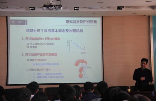 其中,在混凝土材料与尺寸效应的讲解中,金教授表示,“近年来,大型钢筋混凝土工程结构迅猛发展,结构尺寸、跨度及高度的增大及结构形式的多样化使得构件的承载力越来越大、受力体系越来越复杂。钢筋混凝土构件破坏的尺寸效应行为对混凝土结构(尤其是大型混凝土工程结构)的安全性设计提出了新的挑战”。