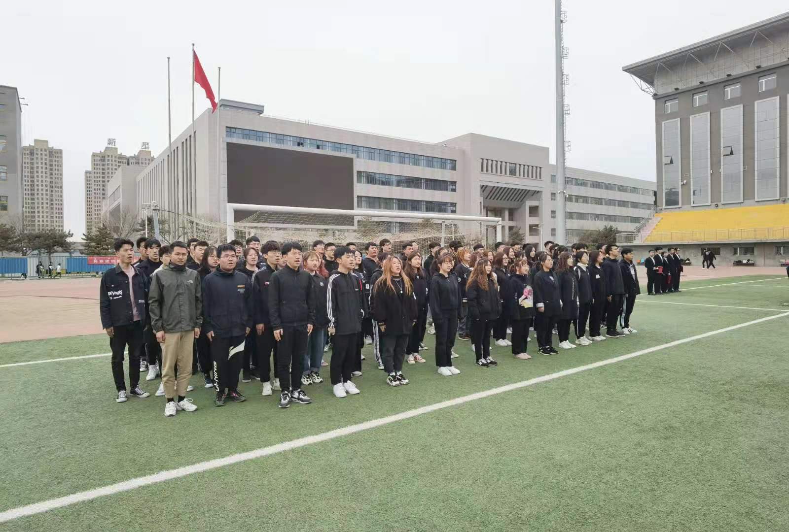 7:30,全院师生在田径场排列整齐,英姿飒爽的国旗护卫队护送五星红旗入场,伴随着雄壮的《义勇军进行曲》,五星红旗徐徐升起。全院师生行注目礼,共同唱响国歌,点燃了炽热的爱国之情。