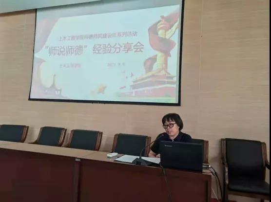 土木系王珊老师与各位老师分享新型授课方式与板书授课要适当结合的经验,合理运用能够更好地提高课堂效果,便于学生接受。作为高校教师,更要注意与学生的沟通交流,多关心学生的情况,鼓励学生追寻热爱,在与学生的互动中教学相长。