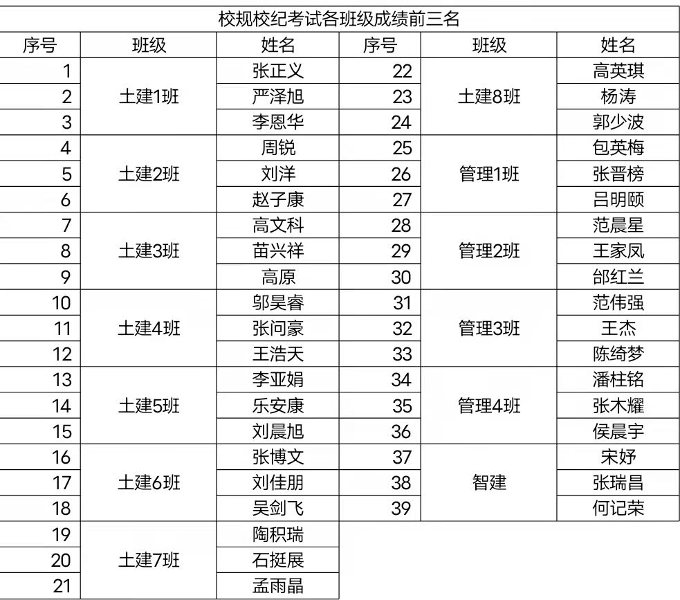 班级前三名名单