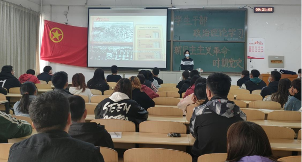 于2021年10月30上午9:00开展“信仰课堂”思政领航行动——学生干部专题教育培训。本次培训充分发挥青年学生能动性和实践性,围绕新民主主义革命时期历史,通过自主学习和分享学习开展进行。