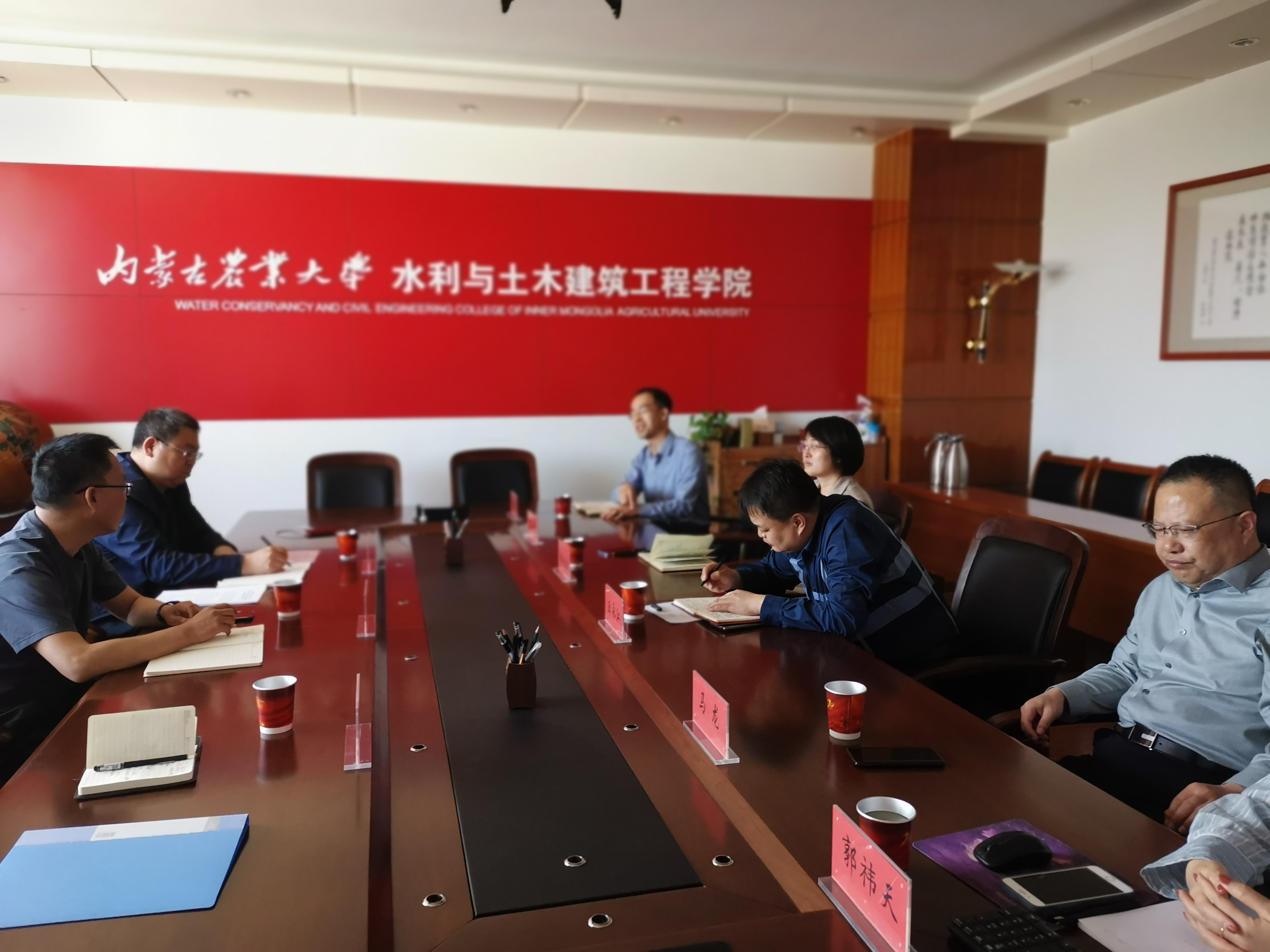 与内蒙古农业大学水利与土木建筑工程学院党委书记王永江进行商洽