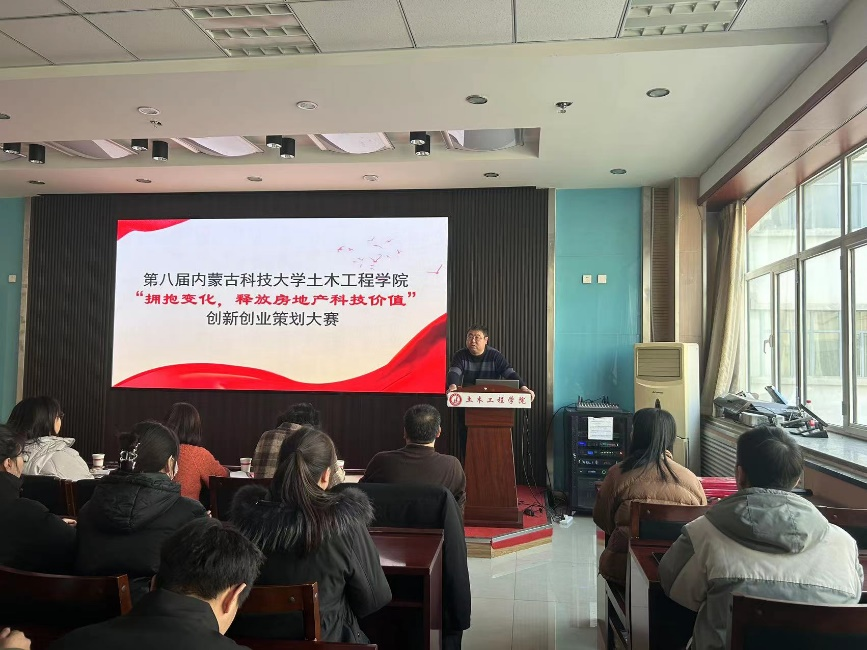 王英浩教学副院长进行讲话,指出创新创业大赛是让同学们将理论与实践相结合,让学生对房地产行业充分了家,锻炼同学们组织、策划、创新能力与解决问题能力,此次比赛是相互学习交流的好机会。随后由主持人介绍本次比赛流程与比赛规则,公布比赛顺序依次进行。