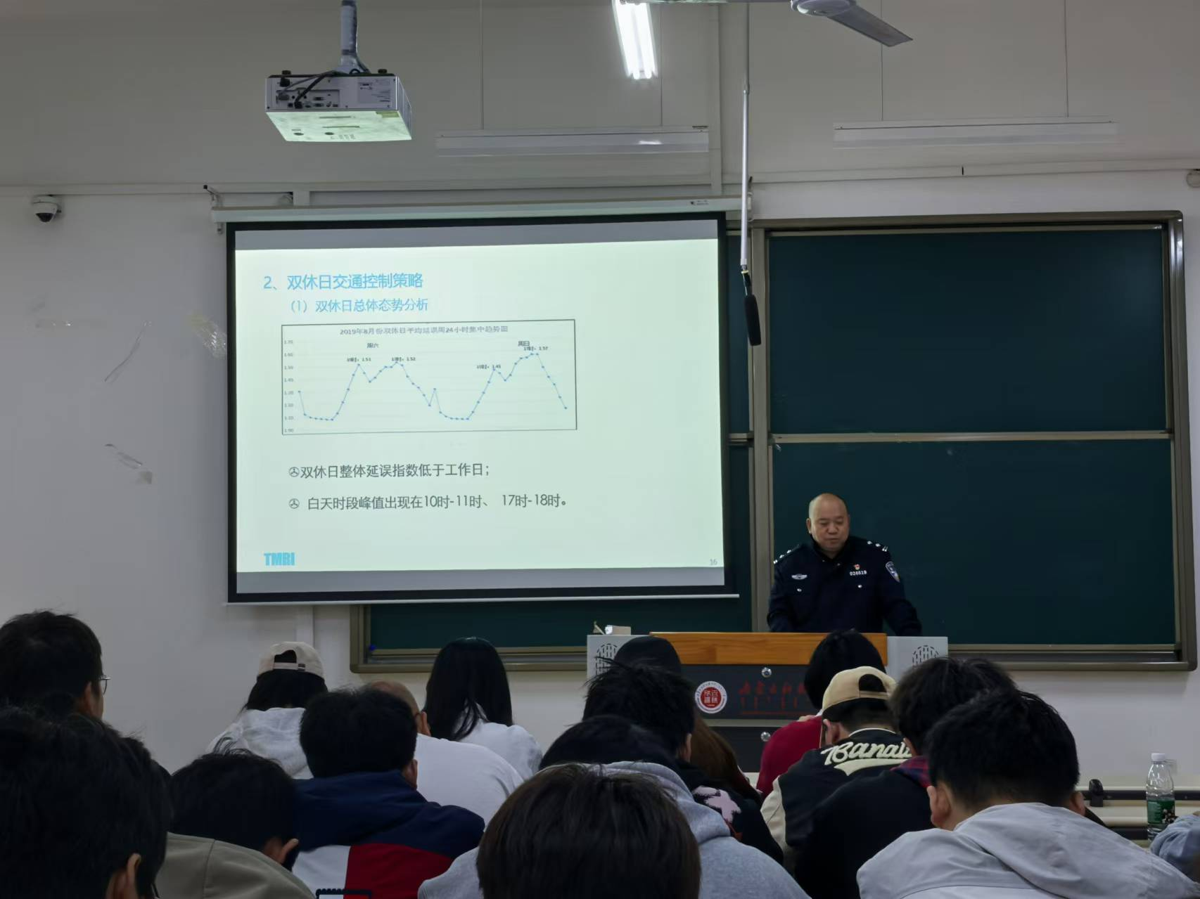 交通工程专业校警、校企共建课《交通管理与控制》邀请包头市交通管理支队荣生伟警官、包头市惠安科技有限公司侯明工程师来校做交通信号控制与优化的课程讲座。