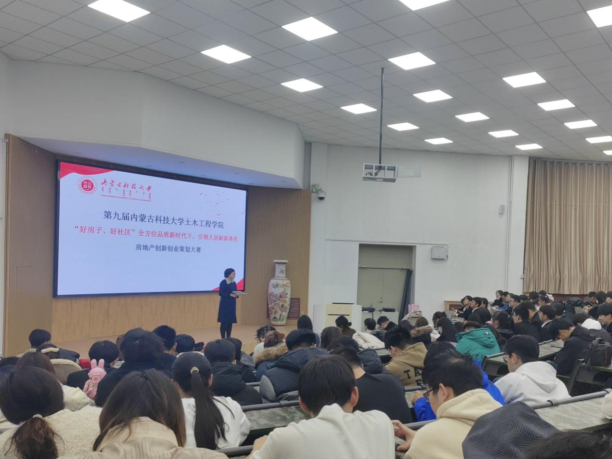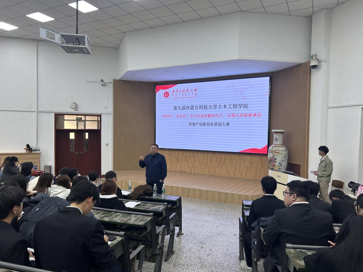 (绿色基建产业学院)房地产创新创业策划大赛在春晖学堂拉开帷幕,王英浩副院长致开幕词。