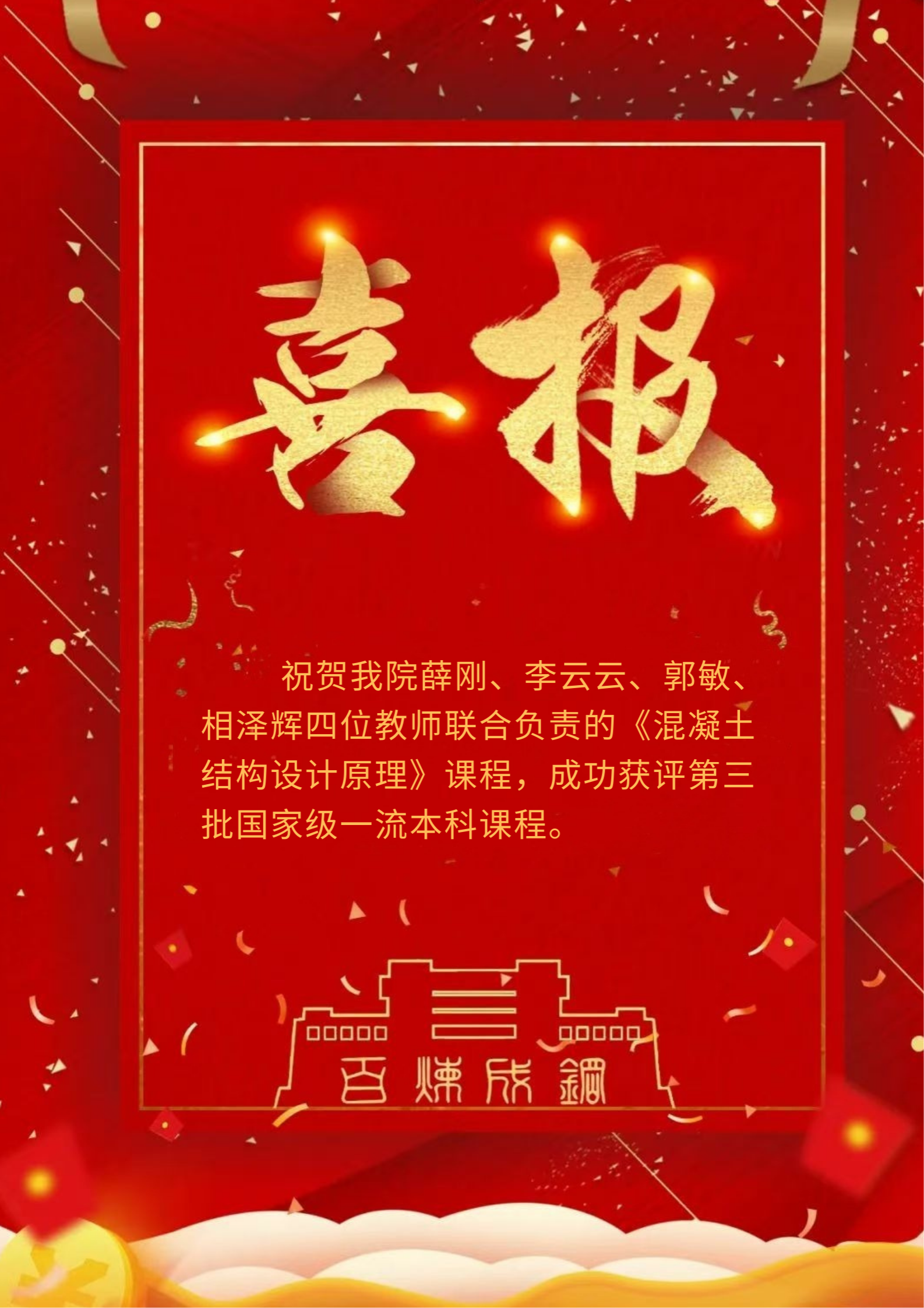 薛刚、李云云、郭敏、相泽辉四位教师联合负责的《混凝土结构设计原理》课程,凭借优质的教学内容、创新的教学模式及显著的教学成效,成功获评第三批国家级一流本科课程。截至目前,亚洲色吧