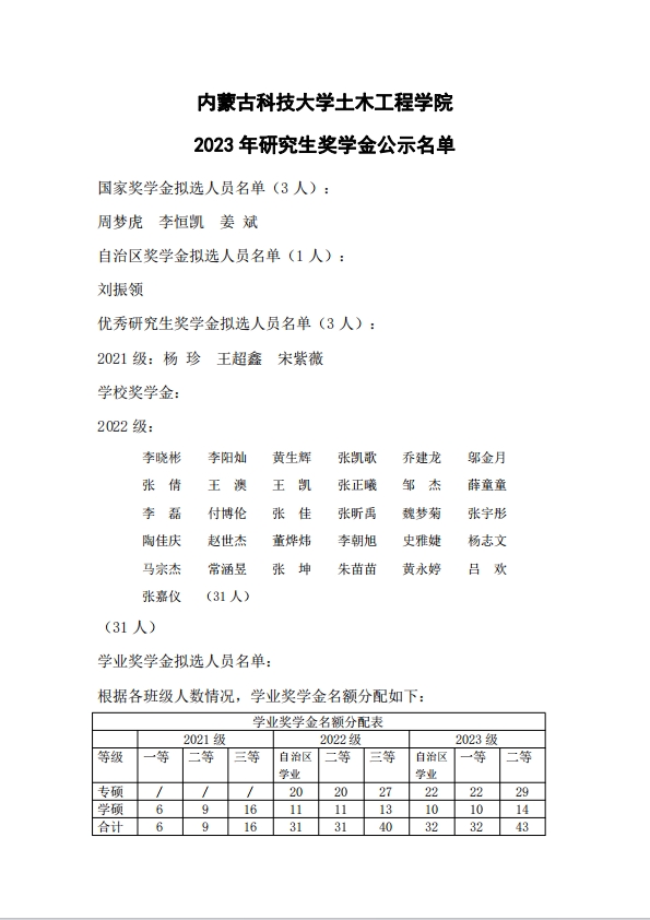 内亚洲色吧 2023年研究生奖学金公示名单
