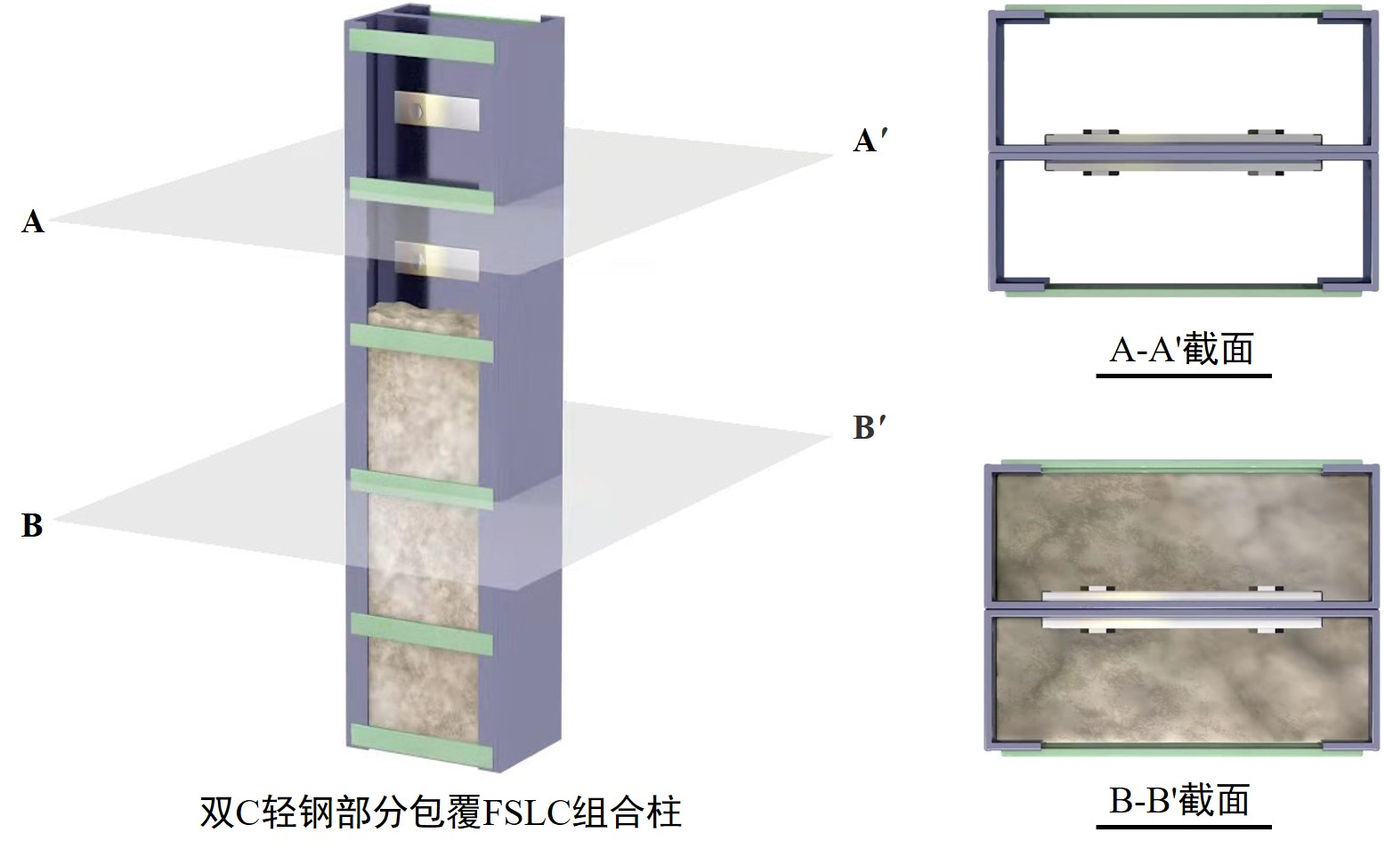 图1 双 C 型轻钢部分包裹FSLC组合柱示意图