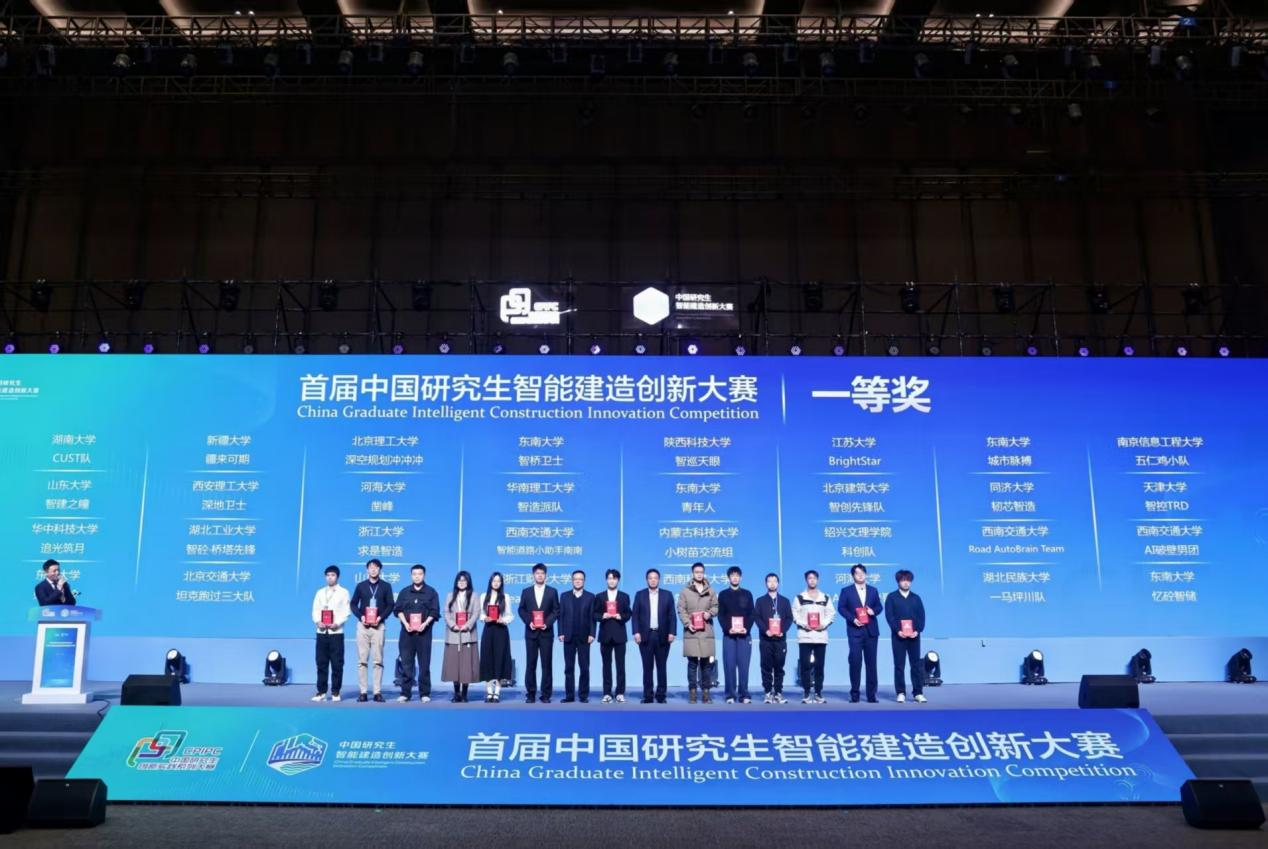 首届中国研究生智能建造创新大赛作为中国研究生创新实践系列大赛2025年新设立的核心赛事,由教育部学位管理与研究生教育司、住房和城乡建设部人事司、交通运输部人事教育司、水利部人事司联合指导,中国学位与研究生教育学会、中国科协青少年科技中心主办,东南大学、南通市人民政府、河海大学承办,赛事规格高、专业性强,吸引了全国顶尖高校的优秀团队同台竞技。大赛设立常规赛道、挑战赛道、企业揭榜赛道三大赛道,其中常规赛道研究创新类聚焦智能建造领域基础研究与技术创新,要求作品具备前沿性、创新性与学术价值,评审环节由11位院士领衔的专家委员会严格把关,确保赛事的权威性与公正性。