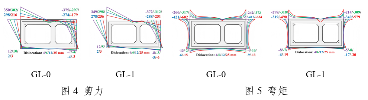 GL-0GL-1的各加载阶段,最大接触压力、剪力和弯矩均出现在倒角处,而中跨内力远小于倒角处,建议优化倒角几何形状和曲率半径来降低接头的应力集中现象。