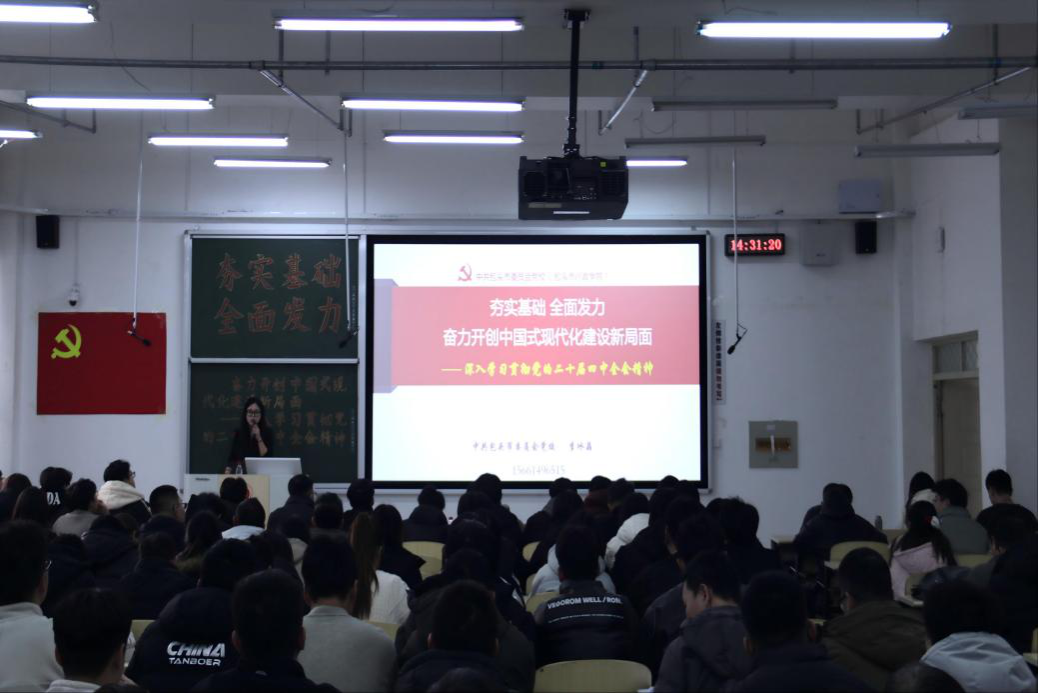 于逸夫楼G201开展了一场《夯实基础、全面发力,奋力开创中国式现代化建设新局面——深入学习贯彻党的二十届四中全会精神》专题讲座。本次讲座特邀包头市委党校经济与管理学教研室主任、副教授李冰晶进行主讲。