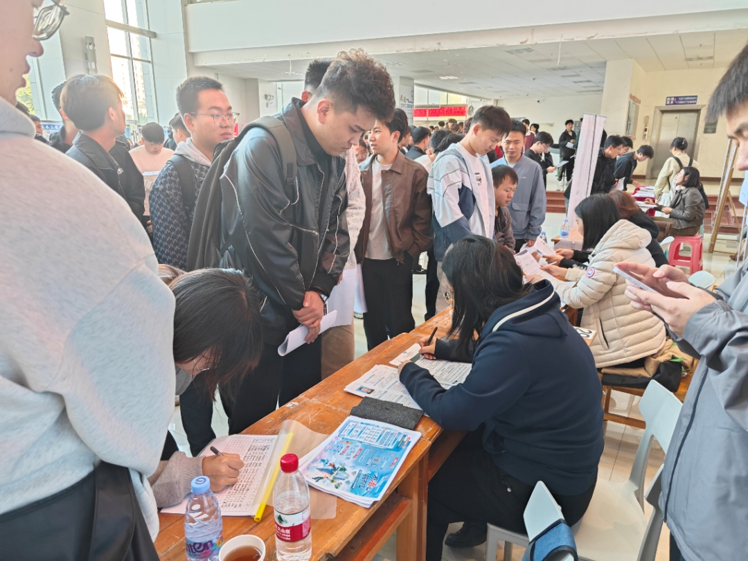 及相关专业毕业生积极参会,主动与用人单位沟通交流,详细了解企业情况、岗位要求及职业发展路径。经过深入洽谈,现场有100余名毕业生与用人单位达成初步就业意向。