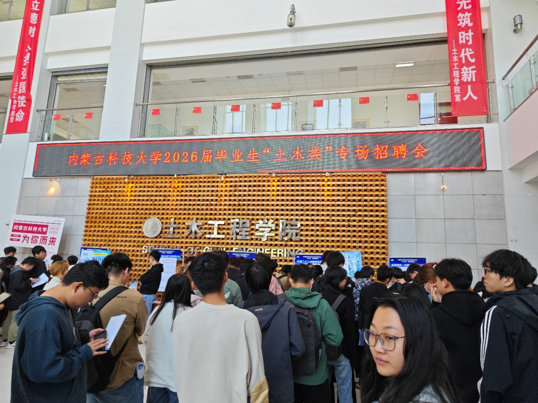 2026届毕业生“土木类”专场招聘会在逸夫楼一楼顺利举行。本次招聘会吸引了10余家来自建筑、交通、设计等领域的用人单位参与,共提供就业岗位1186个,涉及土木建筑大类、机械设计制造类、工商管理类、电气类等61个招聘职位,岗位需求多样,覆盖面广。