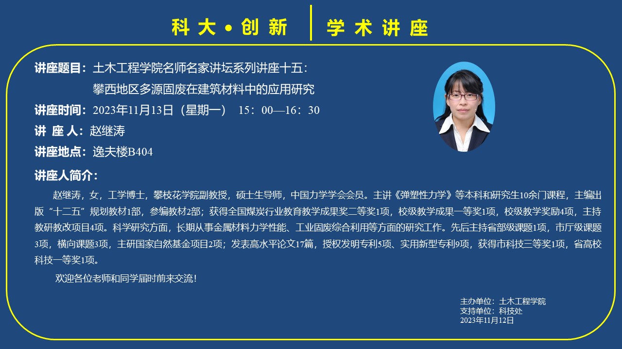 讲座题目:攀西地区多源固废在建筑材料中的应用研究