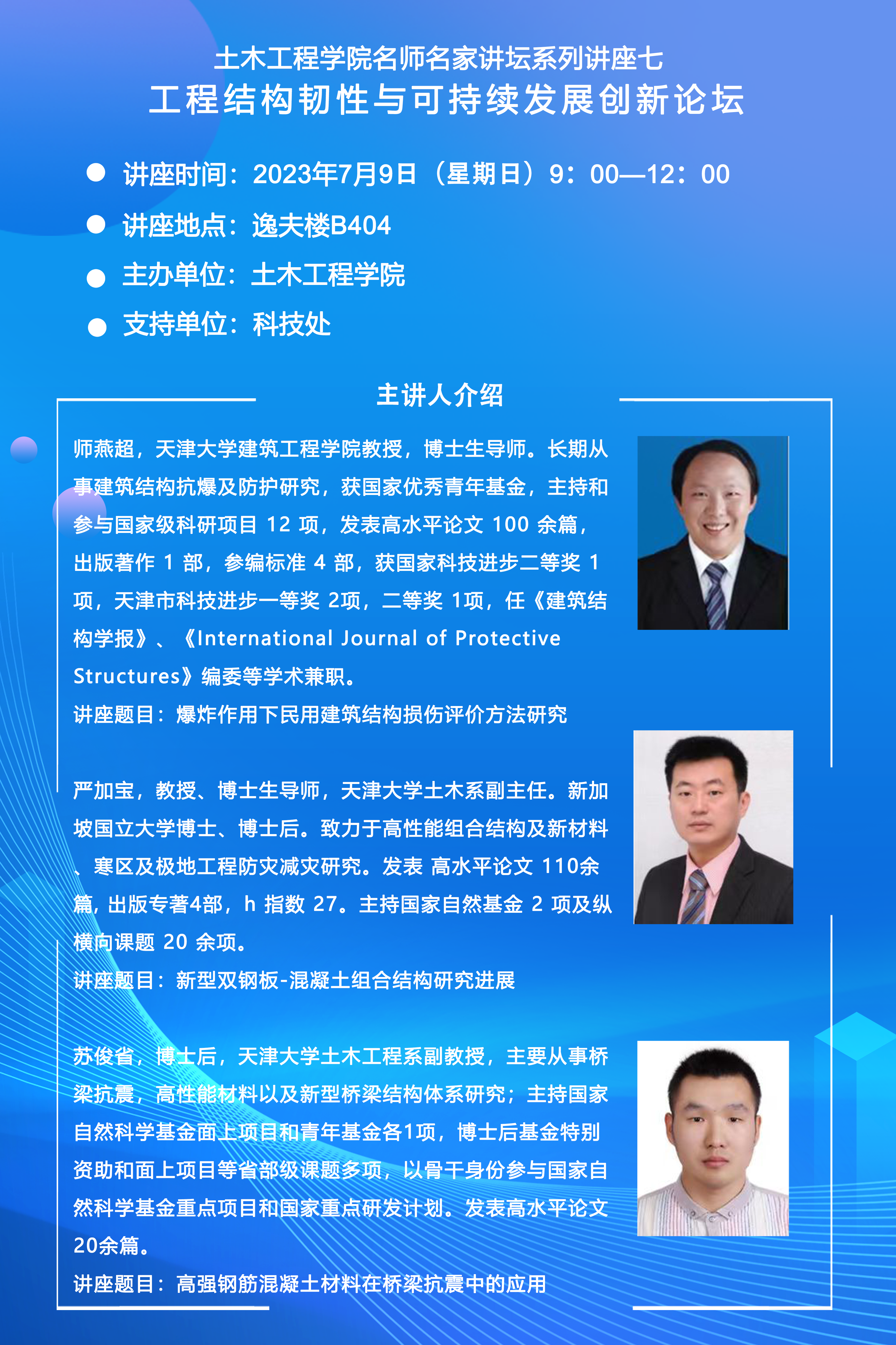 名师名家讲坛系列讲座七——工程结构韧性与可持续发展创新论坛