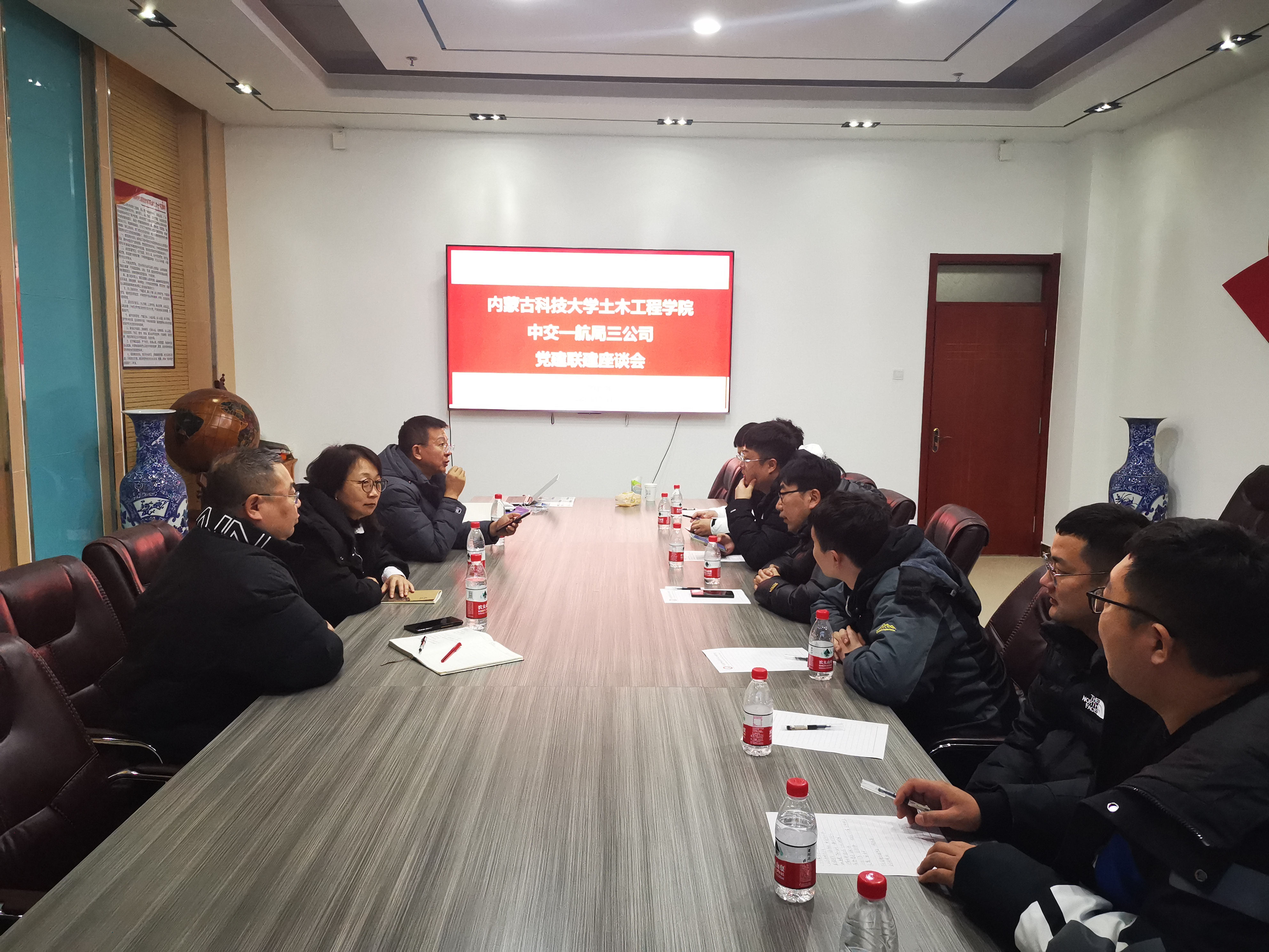 与中交一航局三公司包头项目部举行校企交流活动,积极探索党建引力的校企可持续合作模式,助力产教融合快速发展。学院党委书记张利敏、副院长王英浩等8人,中交一航局三公司包头项目部书记贺洪刚一行7人参加交流活动。