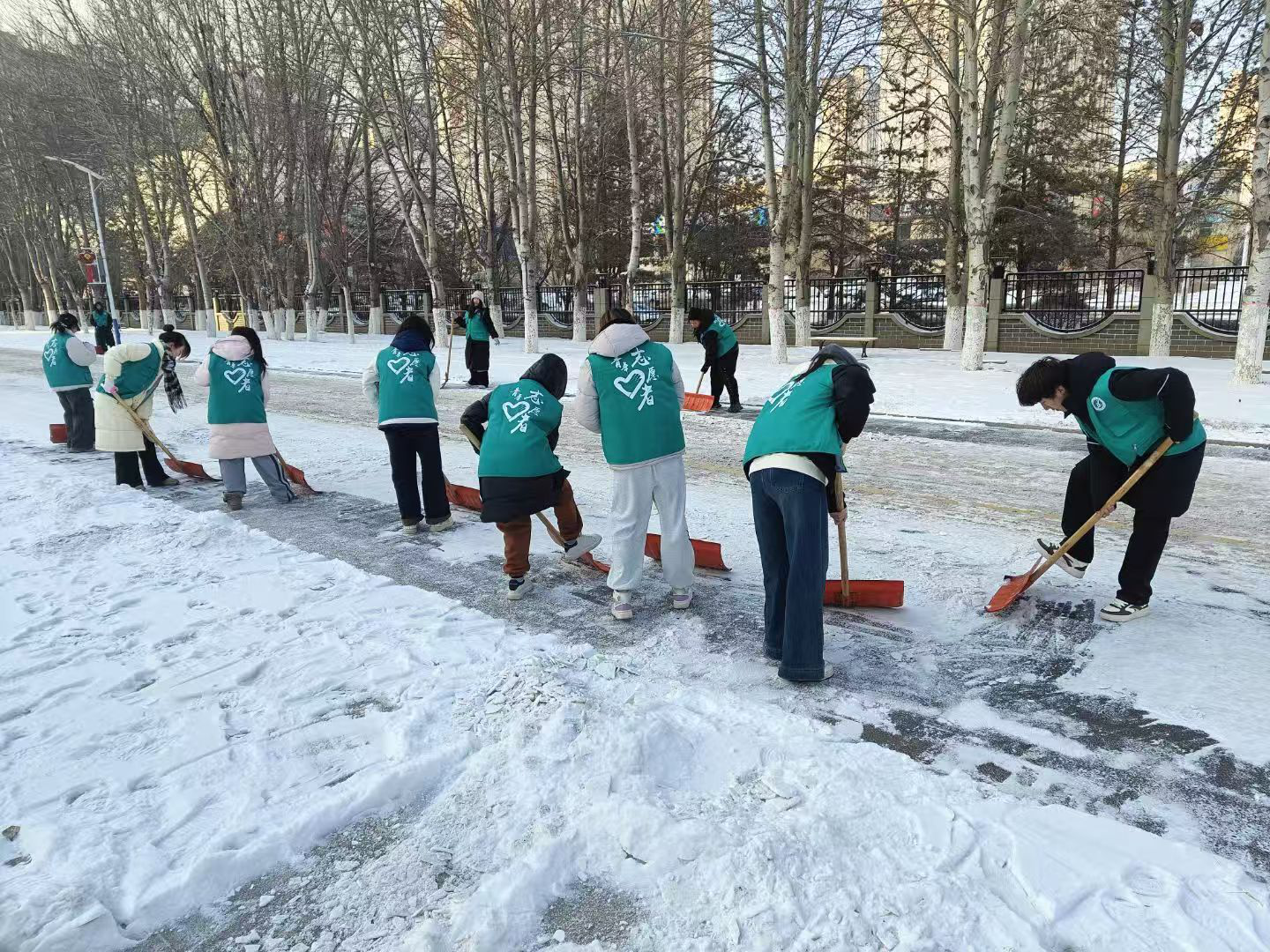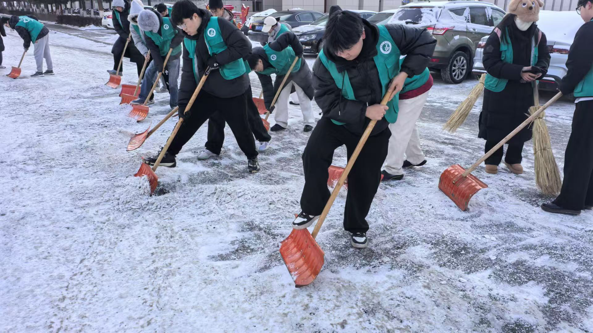 每一次挥锹铲雪,不只是为了扫清道路,更是为了将“知校、爱校、荣校”的信念根植于心。未来,我们将继续携手,并肩前行,让每一次志愿服务活动,都成为校园中最温暖的风景。