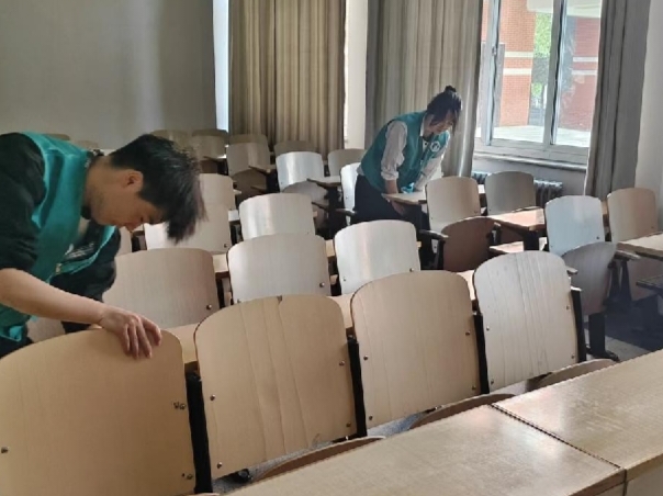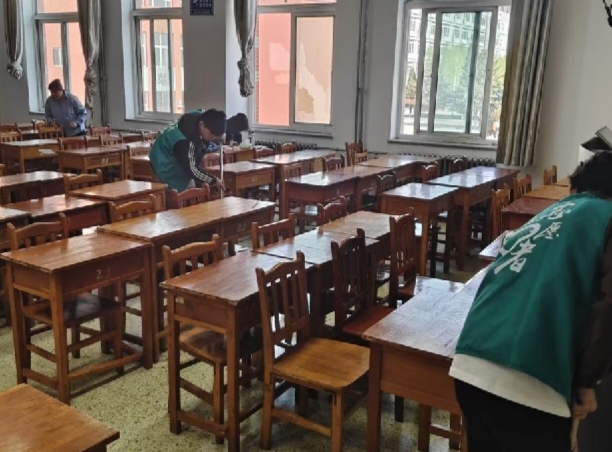 志愿者们化身校园守护者,用双手擦拭尘埃,以行动践行担当,让教室重焕整洁光彩。