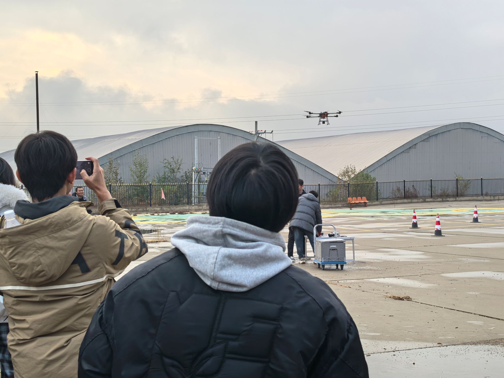 无人机如何与交通工程结合?在畅行数字科技集团,同学们找到了答案。企业专家展示了无人机在交通勘察、道路巡检、应急抢险中的丰富案例。在实操训练场,教员娴熟的飞行演示——起飞、悬停、航线飞行、精准降落——更是引来阵阵惊叹,生动揭示了“低空+交通”的无限潜力。